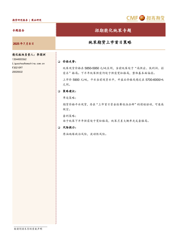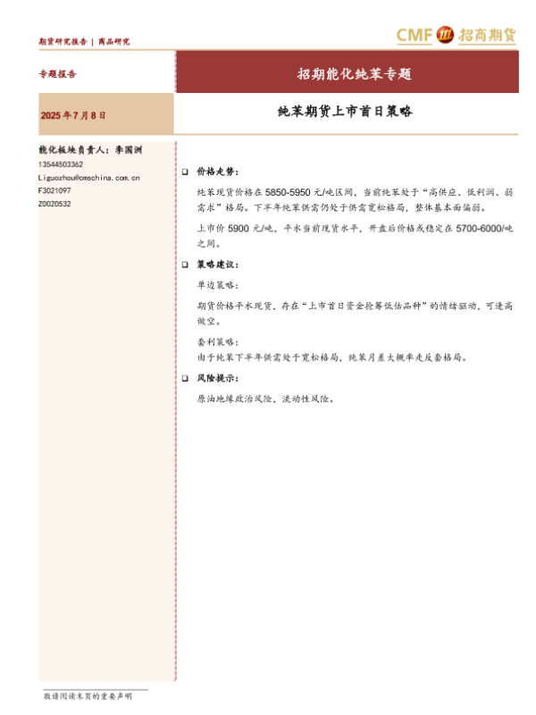 【招商期货】【20250708】招期能化纯苯专题_纯苯期货上市首日策略-9页