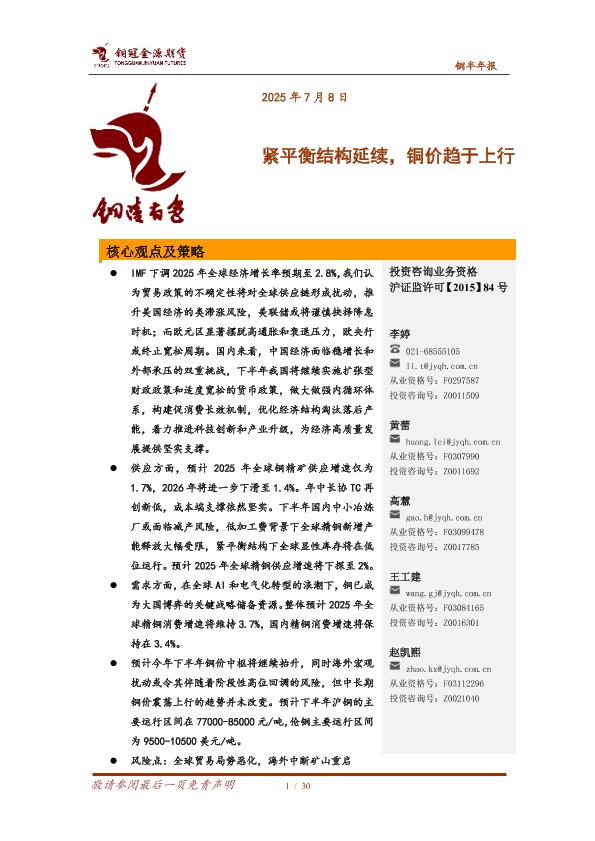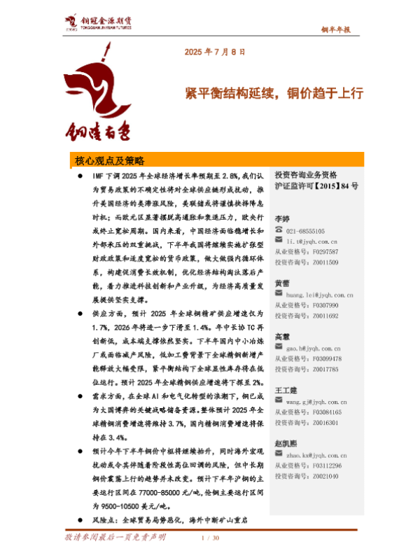 【铜冠金源期货】【20250708】铜半年报_紧平衡结构延续_铜价趋于上行-30页