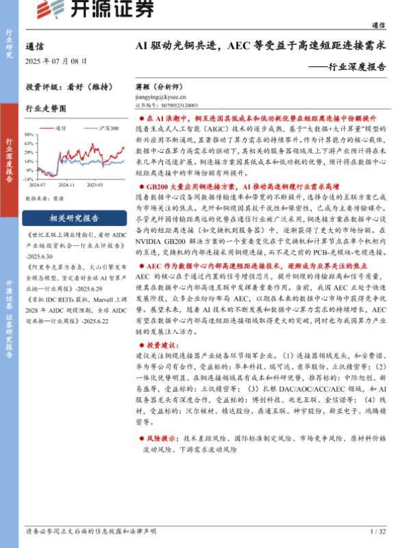【开源证券】【20250708】AI驱动光铜共进_AEC等受益于高速短距连接需求-32页