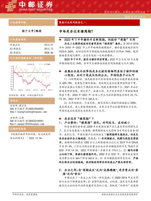 【中邮证券】【20221208】养殖行业系列报告之一:市场是否还有猪周期?-44页