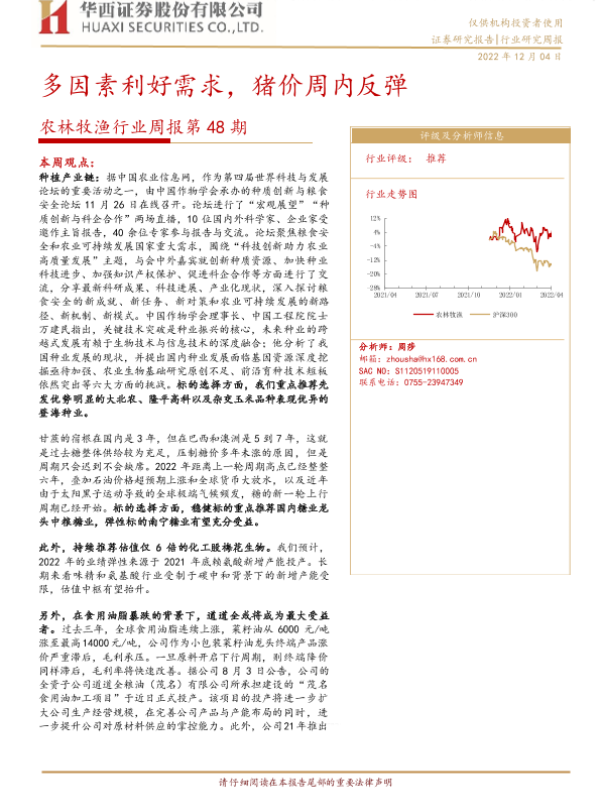 【华西证券】【20221204】农林牧渔行业周报第48期:多因素利好需求,猪价周内反弹-25页