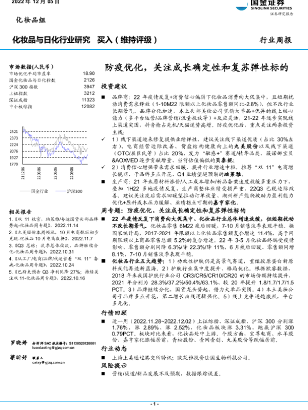 【国金证券】【20221205】化妆品与日化行业:防疫优化,关注成长确定性和复苏弹性标的-17页