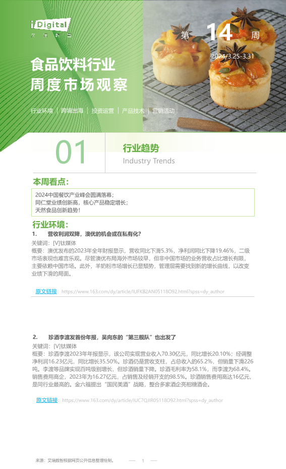 【艾瑞咨询】【20240331】2024年第14周-食品饮料行业周度市场观察-12页