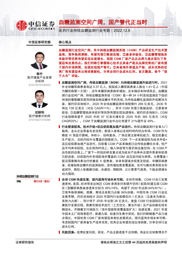【中信证券】【20221208】医药行业持续血糖监测行业专题:血糖监测空间广阔,国产替代正当时-45页