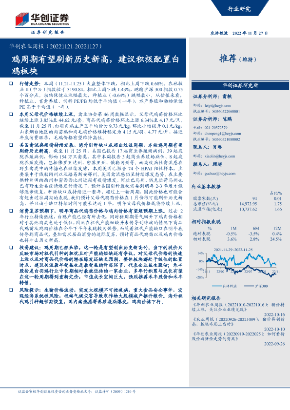 【华创证券】【20221227】华创农业周报:鸡周期有望刷新历史新高,建议积极配置白鸡板块-29页