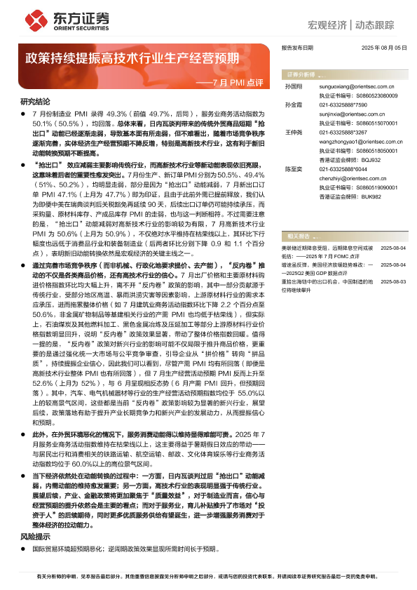 【东方证券】【20250805】7月PMI点评:政策持续提振高技术行业生产经营预期-3页