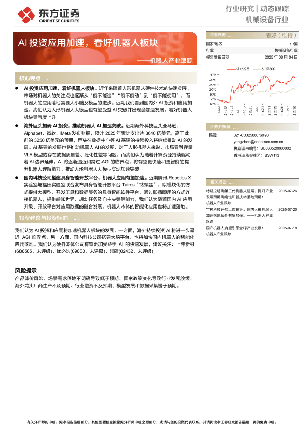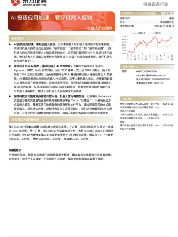【东方证券】【20250804】机械设备行业机器人产业跟踪:AI投资应用加速,看好机器人板块-3页