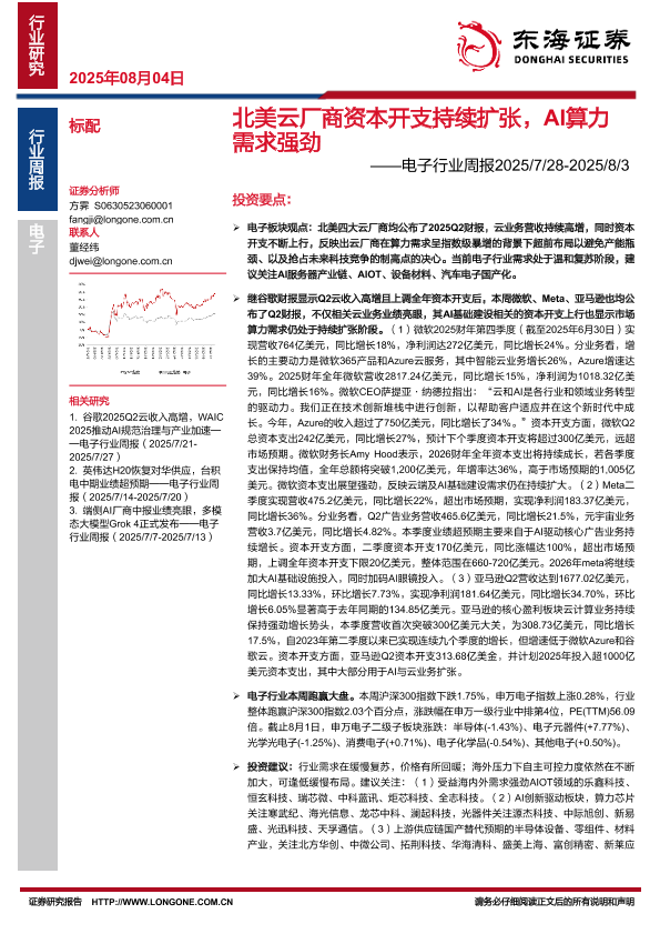 【东海证券】【20250804】北美云厂商资本开支持续扩张,AI算力需求强劲-14页