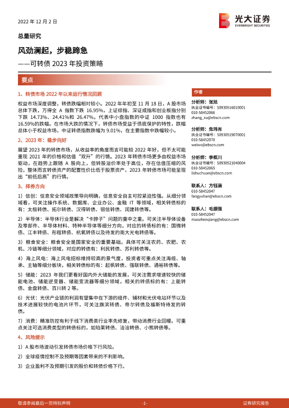 【光大证券】【20221202】可转债2023年投资策略:风劲澜起,步稳蹄急-19页