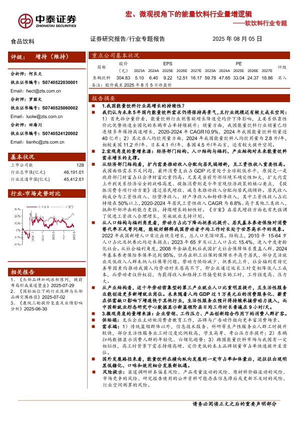 【中泰证券】【20250805】软饮料行业专题:宏、微观视角下的能量饮料行业量增逻辑-10页