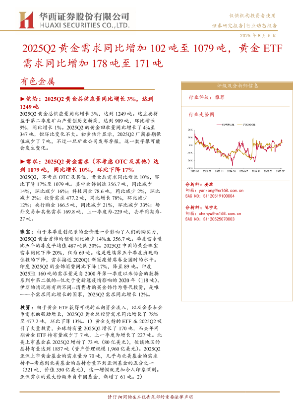 【华西证券】【20250805】2025Q2黄金需求同比增加102吨至1079吨,黄金ETF需求同比增加178吨至171吨-19页