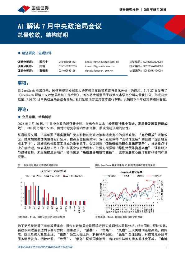 【国信证券】【20250805】AI解读7月中央政治局会议:总量收敛,结构鲜明-5页