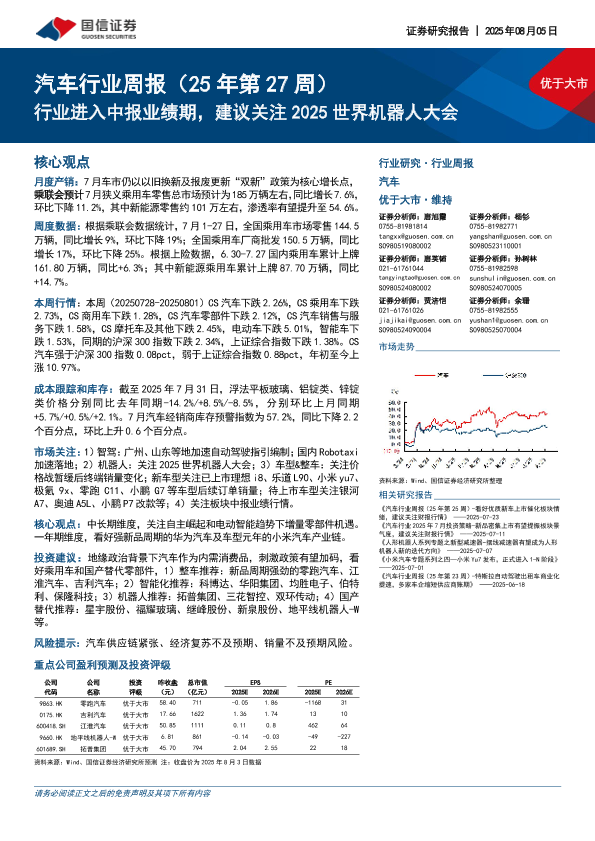 【国信证券】【20250805】汽车行业周报(25年第27周):行业进入中报业绩期,建议关注2025世界机器人大会-31页