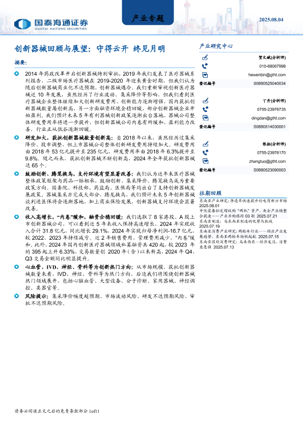 【国泰海通证券】【20250804】创新器械回顾与展望:守得云开终见月明-11页