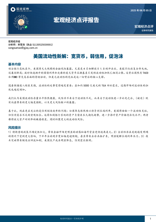 【国金证券】【20250805】宏观经济点评报告:美国流动性新解,宽货币,弱信用,促泡沫-8页