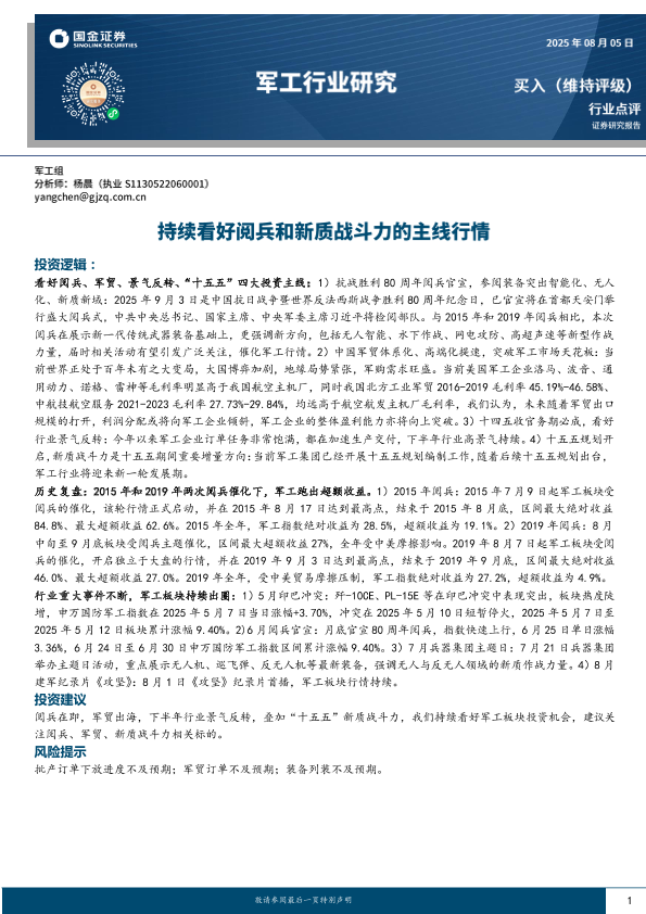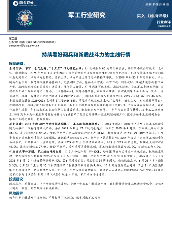 【国金证券】【20250805】军工行业点评:持续看好阅兵和新质战斗力的主线行情-12页