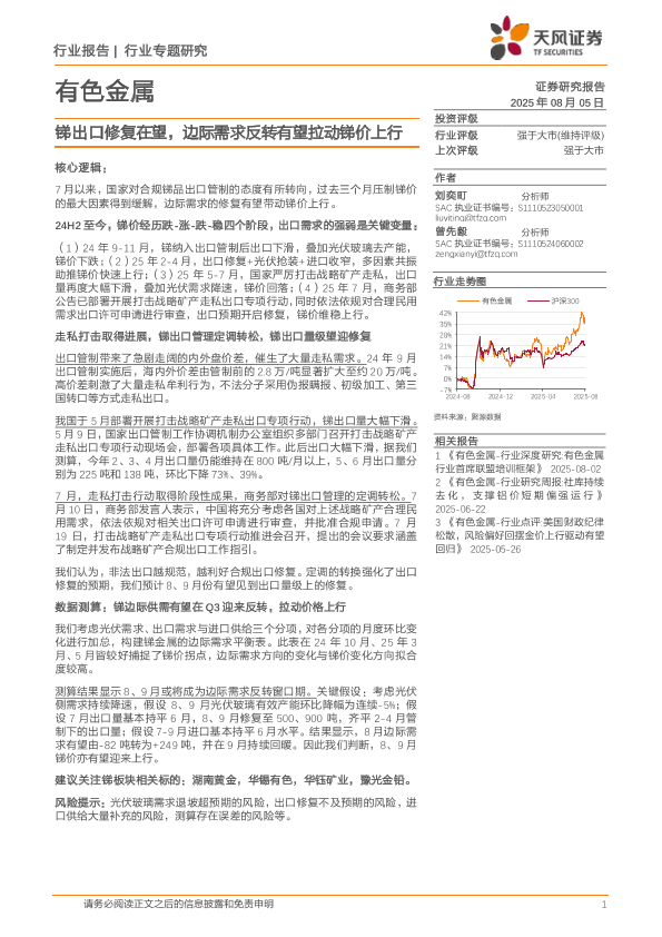 【天风证券】【20250805】有色金属行业:锑出口修复在望,边际需求反转有望拉动锑价上行-7页