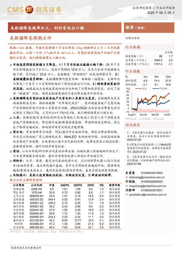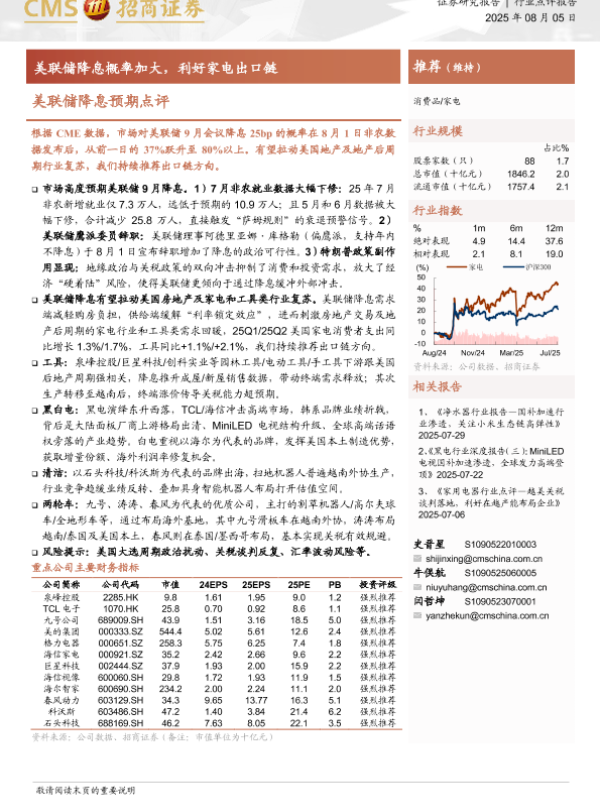 【海通证券】【20250805】家电行业美联储降息预期点评-2页
