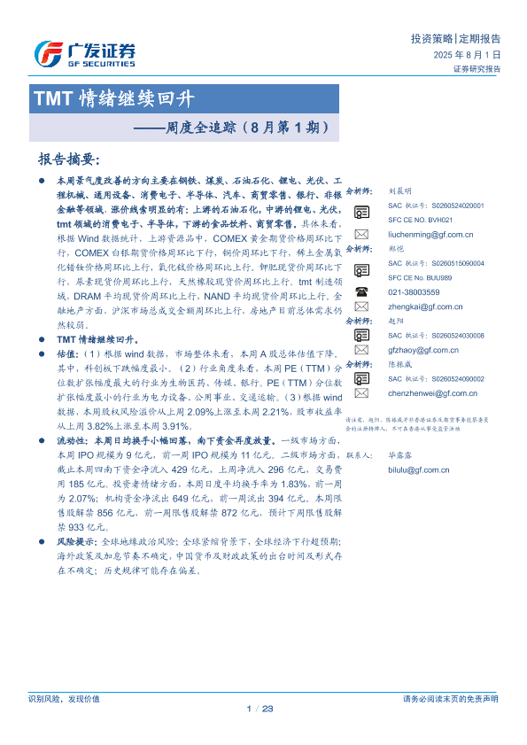 【广发证券】【20230801】TMT情绪继续回升-23页