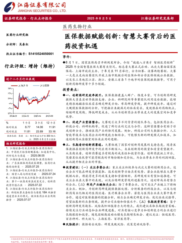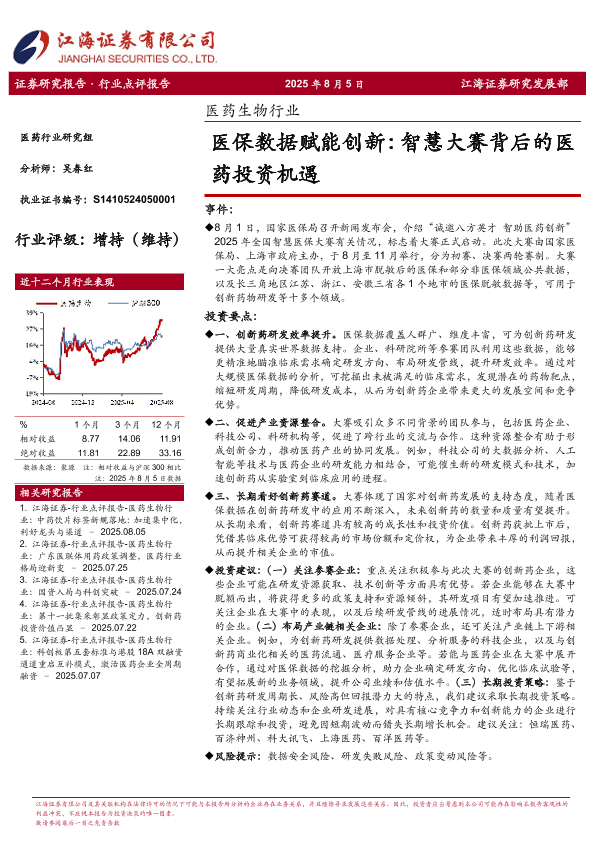 【江海证券】【20250805】医药生物行业:医保数据赋能创新,智慧大赛背后的医药投资机遇-3页
