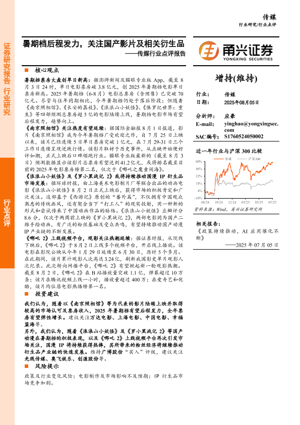 【甬兴证券】【20250805】暑期档后程发力,关注国产影片及相关衍生品-3页