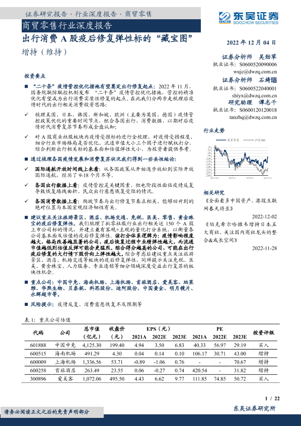 【东吴证券】【20221204】商贸零售行业深度报告:出行消费A股疫后修复弹性标的“藏宝图”-22页