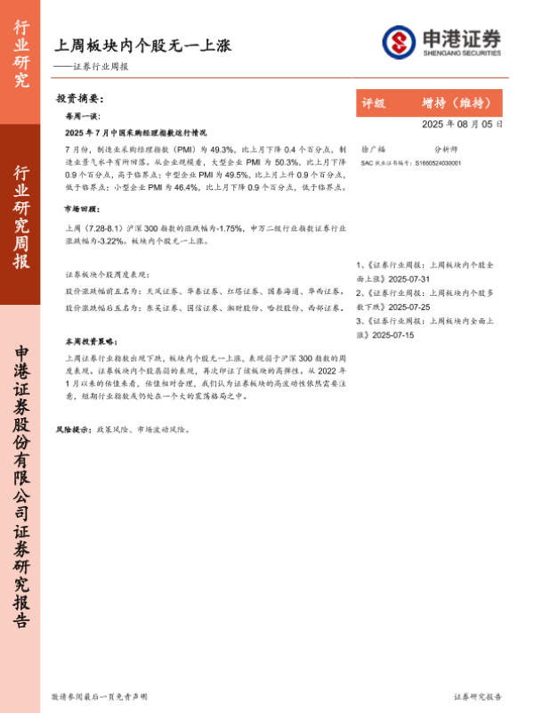 【申港证券】【20250805】证券行业周报:上周板块内个股无一上涨-7页