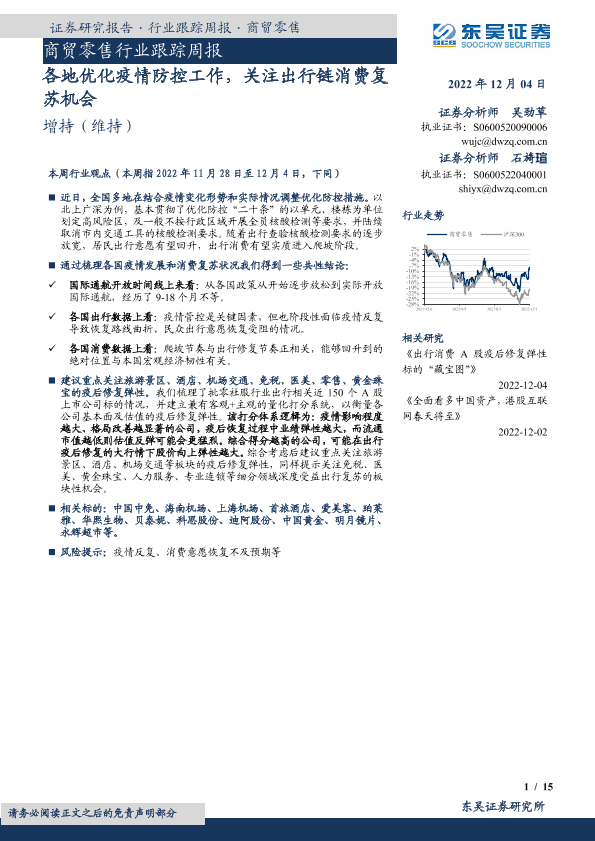 【东吴证券】【20221204】商贸零售行业跟踪周报:各地优化疫情防控工作,关注出行链消费复苏机会-15页