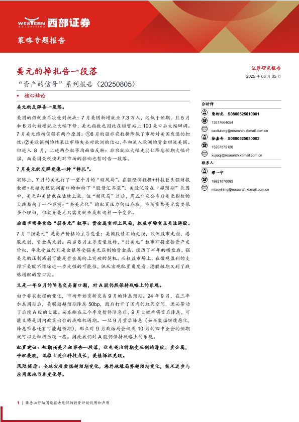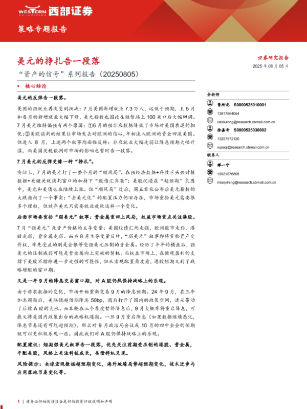 【西部证券】【20250805】美元的挣扎告一段落-14页