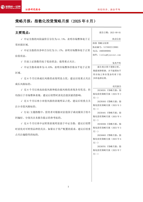 【金圆统一证券】【20250801】策略月报:指数化投资策略月报-11页