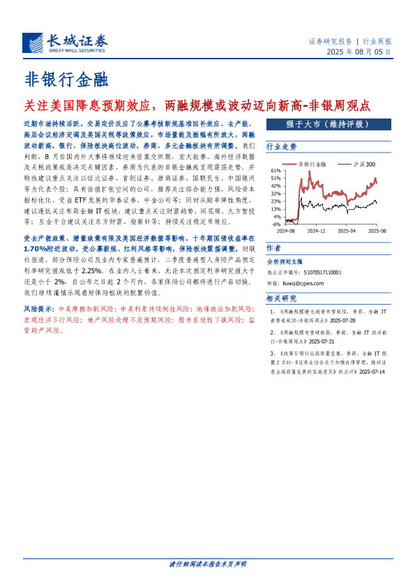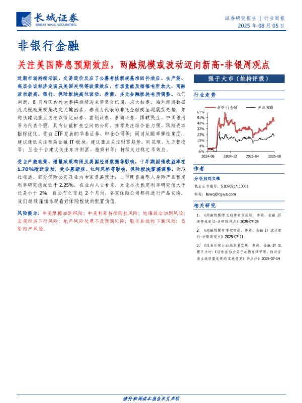 【长城证券】【20250805】关注美国降息预期效应,两融规模或波动迈向新高-非银周观点-5页