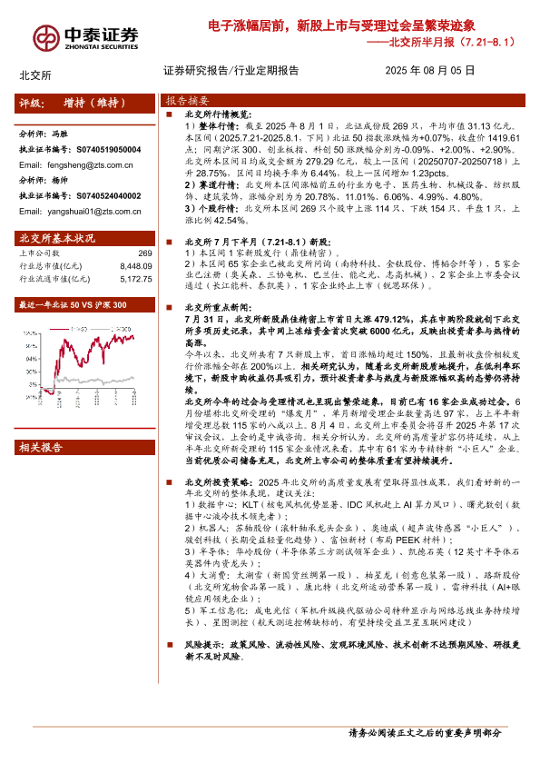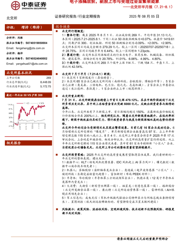 【中泰证券】【20250805】北交所半月报:电子涨幅居前,新股上市与受理过会呈繁荣迹象-8页