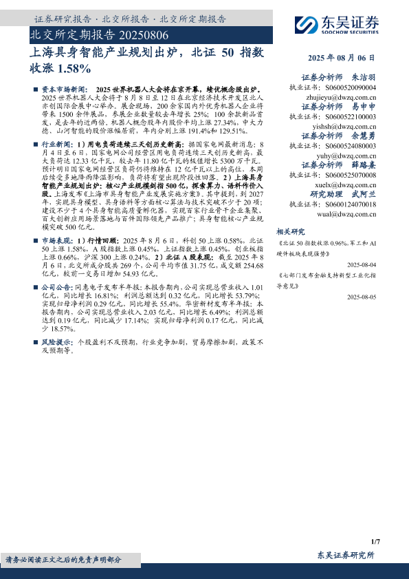 【东吴证券】【20250806】北交所定期报告:上海具身智能产业规划出炉,北证50指数收涨1.58%-7页