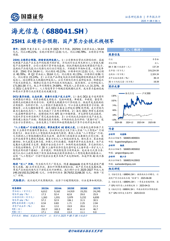 【国盛证券】【20250806】25H1业绩符合预期,国产算力全技术栈领军-3页