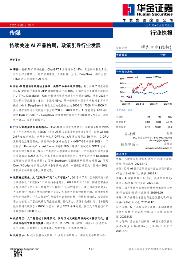 【华金证券】【20250805】传媒行业快报:持续关注AI产品格局,政策引导行业发展-3页