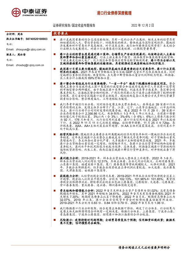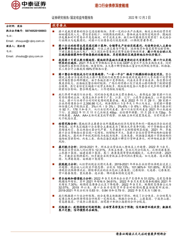 【中泰证券】【20221202】固定收益专题:港口行业债券深度梳理-36页