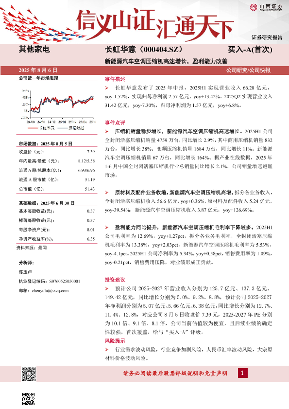 【山西证券】【20250806】新能源汽车空调压缩机高速增长,盈利能力改善-5页