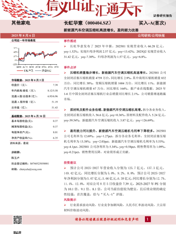 长虹华意 市场表现 新能源汽车 空调压缩机 盈利能力