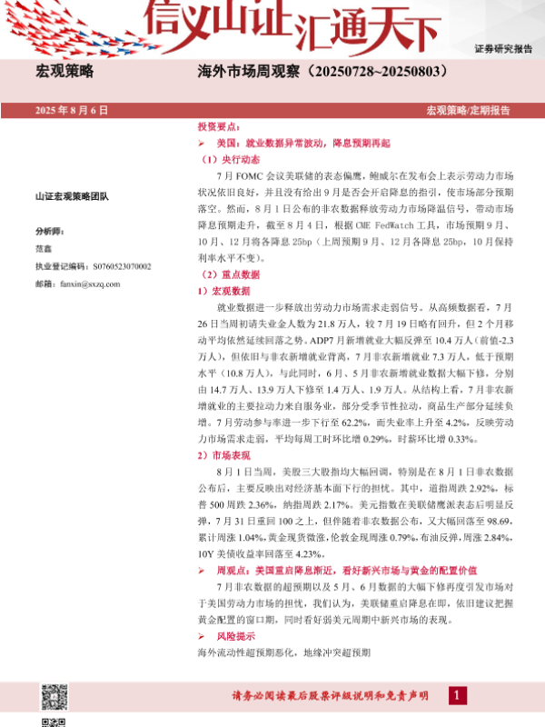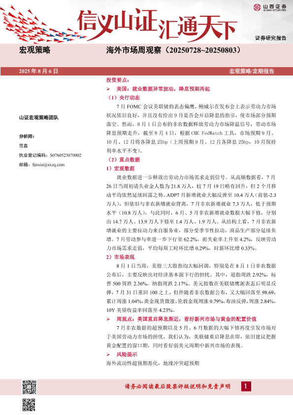 宏观经济 市场表现 金融市场 货币政策 就业数据