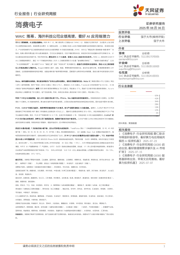 【天风证券】【20250806】消费电子行业研究周报:WAIC落幕、海外科技公司业绩高增,看好AI应用端潜力-17页
