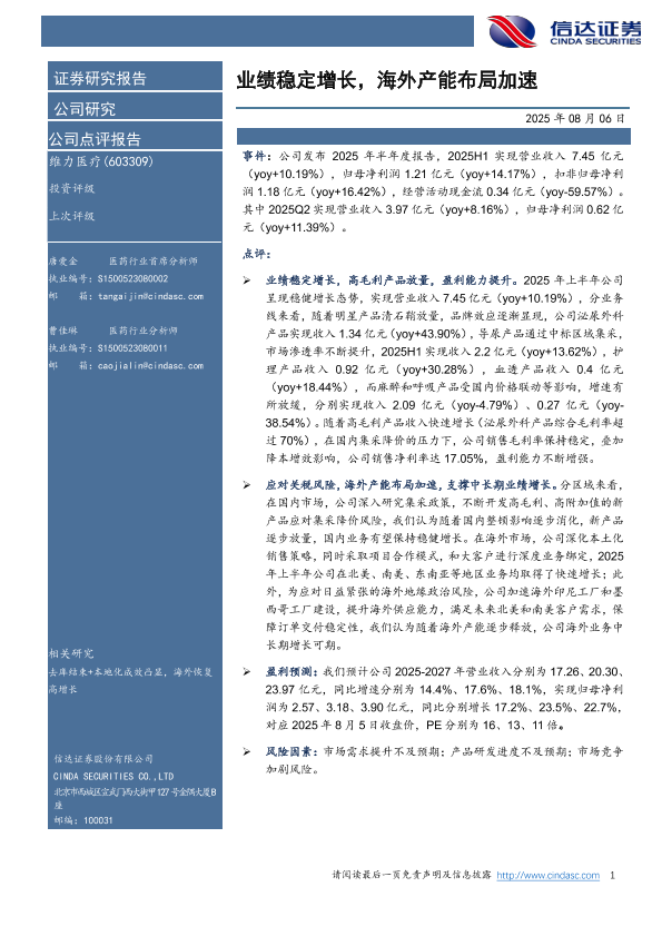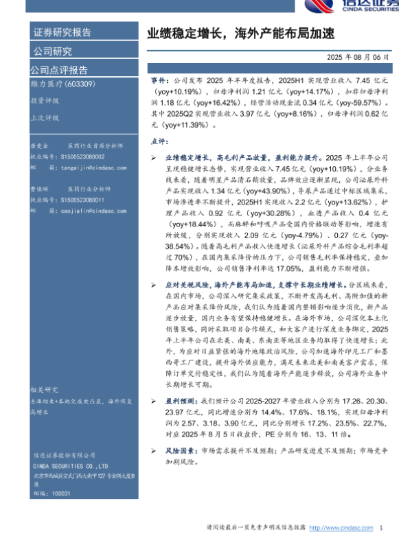 【信达证券】【20250806】业绩稳定增长,海外产能布局加速-5页