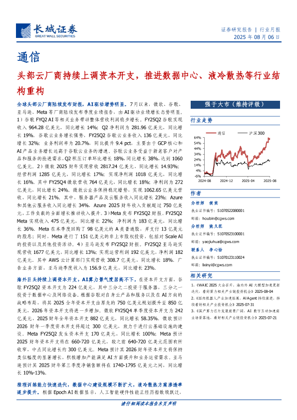 【长城证券】【20250806】通信行业月报:头部云厂商持续上调资本开支,推进数据中心、液冷散热等行业结构重构-17页