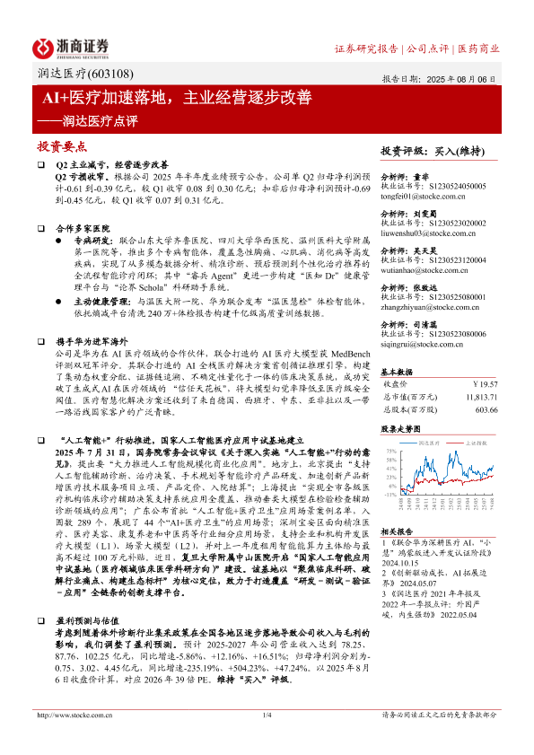 【浙商证券】【20250806】AI+医疗加速落地,主业经营逐步改善-4页