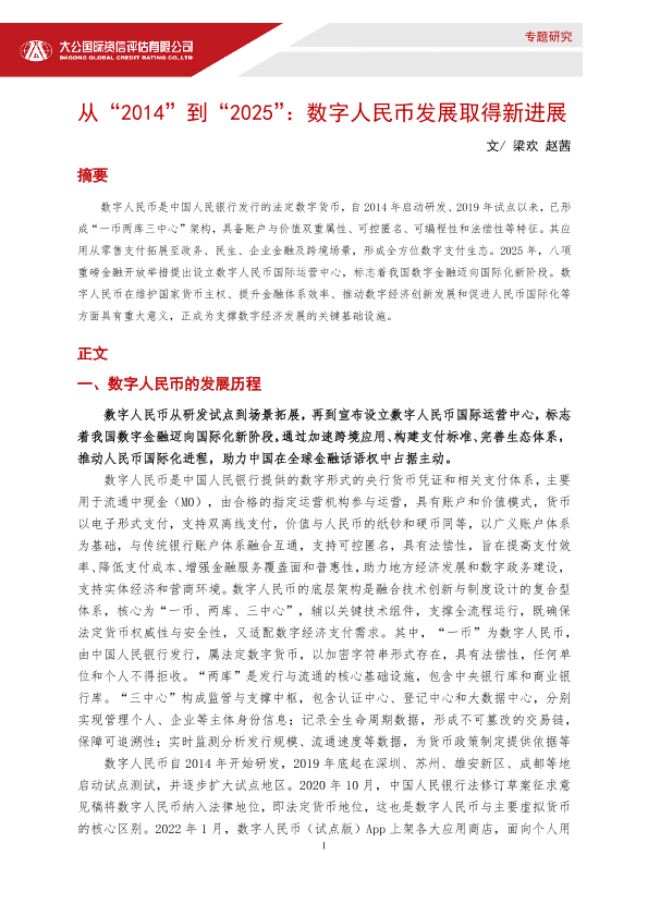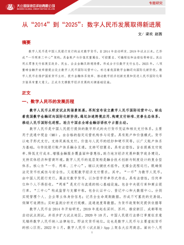 【大公国际】【20250805】从“2014”到“2025”:数字人民币发展取得新进展-4页