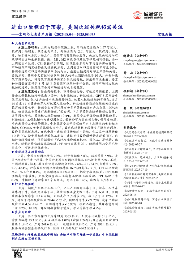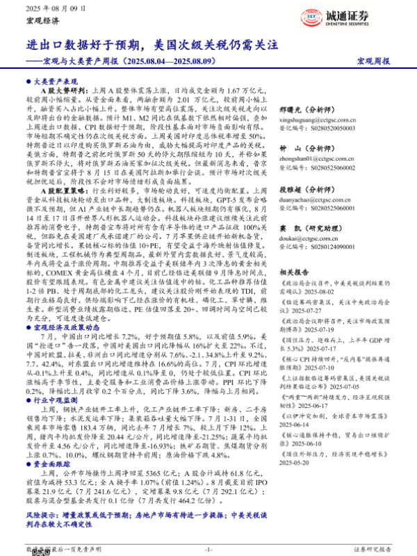 【诚通证券】【20250809】宏观与大类资产周报:进出口数据好于预期,美国次级关税仍需关注-18页
