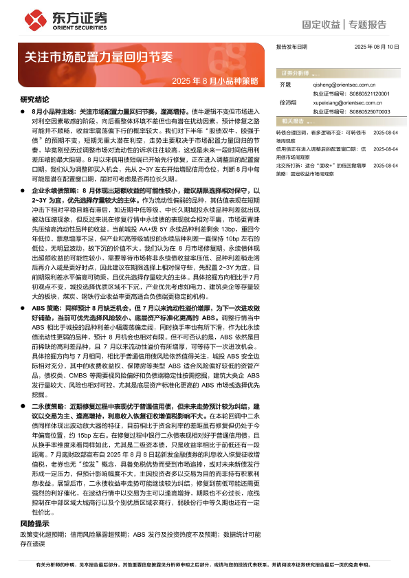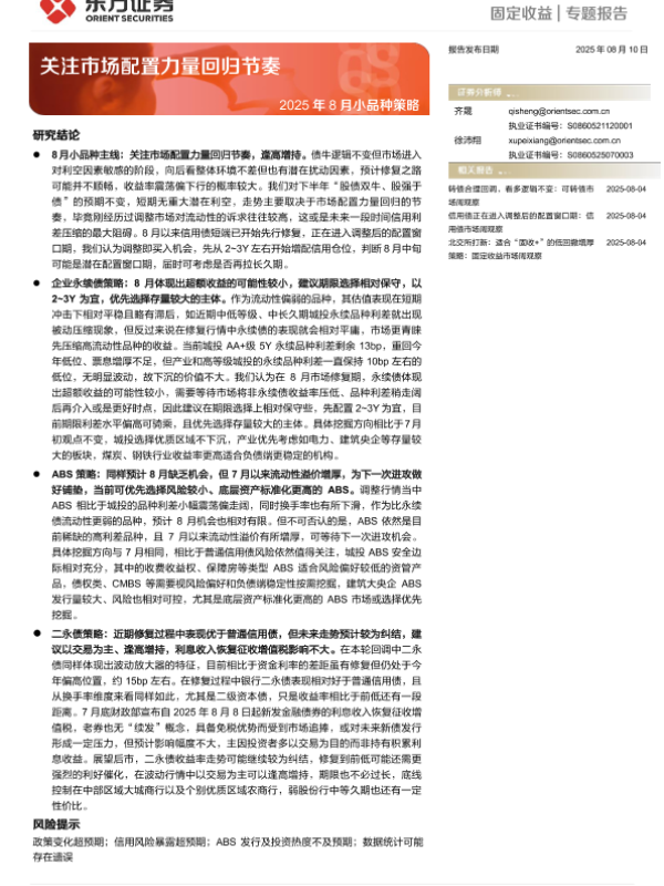 【东方证券】【20250810】2025年8月小品种策略:关注市场配置力量回归节奏-20页