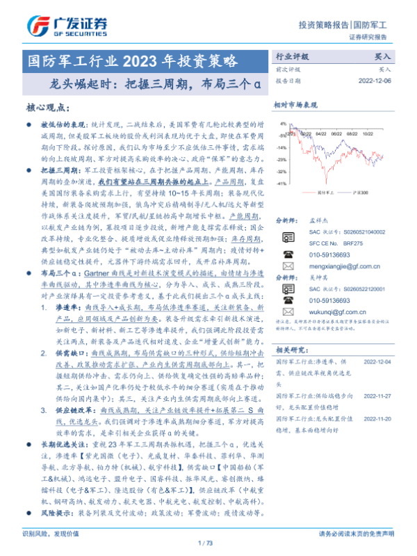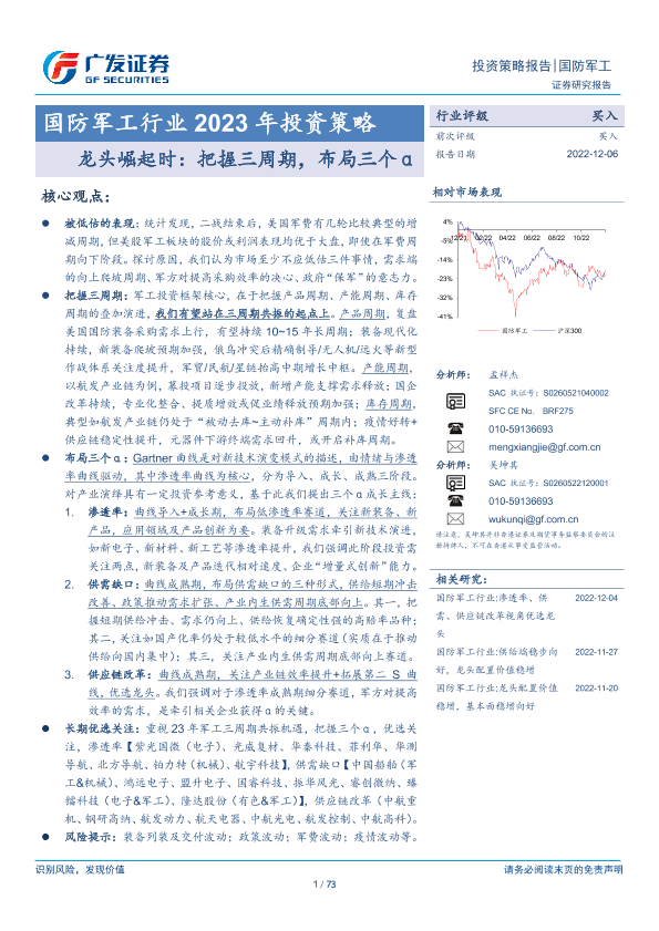 【广发证券】【20221206】国防军工行业2023年投资策略:龙头崛起时:把握三周期,布局三个α-73页