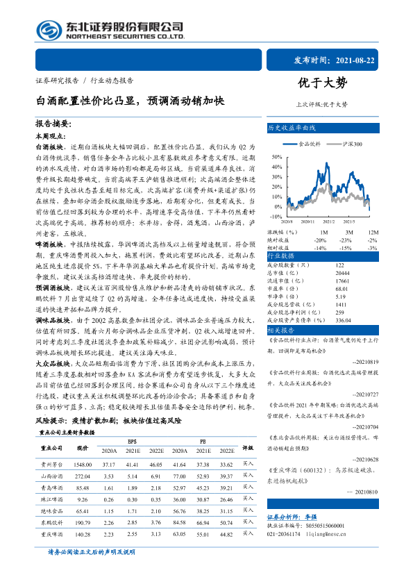 【东北证券】【20210822】食品饮料行业:白酒配置性价比凸显,预调酒动销加快-20页