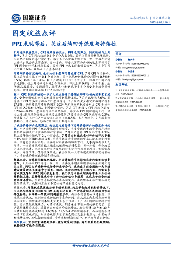 【国盛证券】【20250810】固定收益点评:PPI表现滞后,关注后续回升强度与持续性-7页