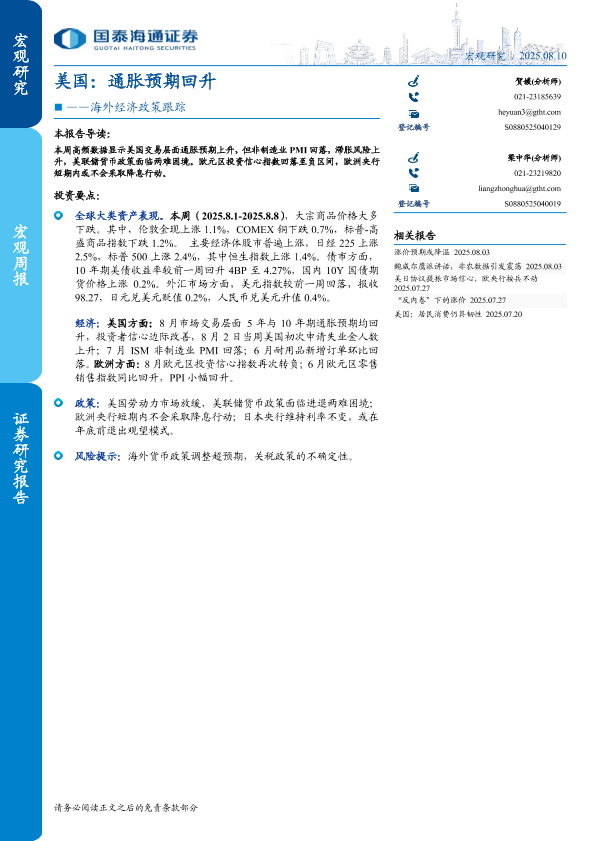 【国泰海通证券】【20250810】美国,通胀预期回升-7页
